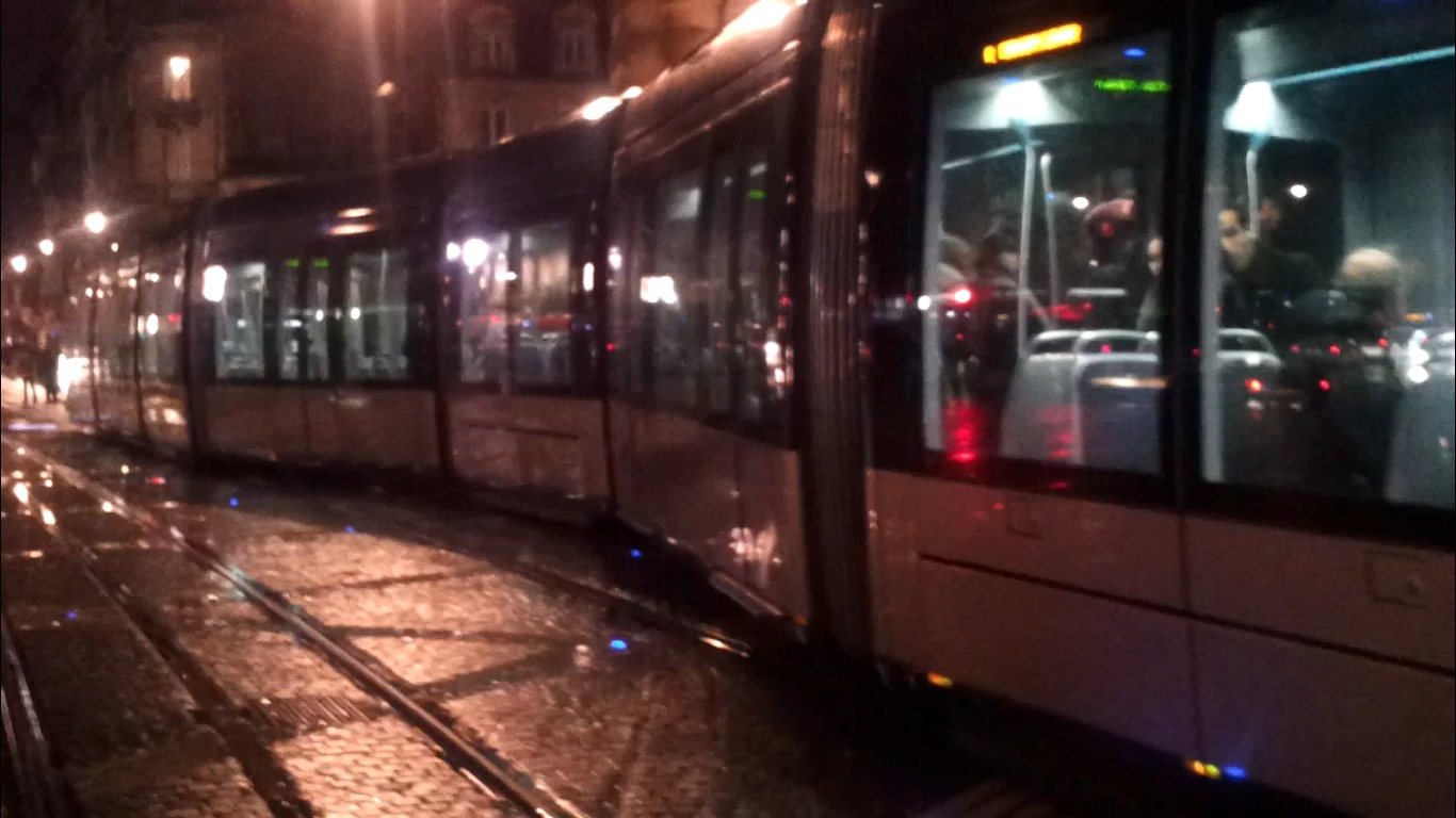 Le tramway ne s'arrête pas et s'engage Place de la Victoire. On espère qu'un piéton ne se trouvera pas sur la route de la partie qui a déraillé... Le tramway se stoppe un peu avant l'arrêt, les gens descendent le plus vite possible... Au final, plus de peur que de mal.