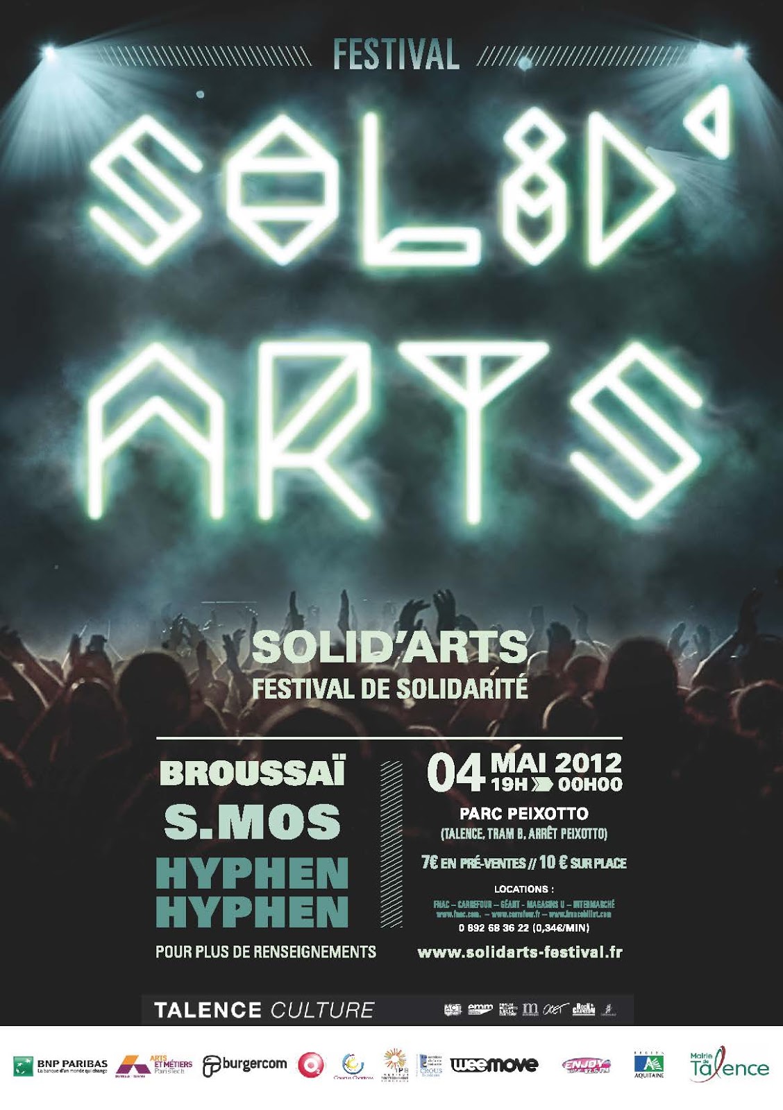 Le Vendredi 4 mai, le Solid’Arts, festival de solidarité étudiante du campus de Bordeaux-Talence, sera de retour au Parc Peixotto pour une édition 2012 sous le thème “Fluo Light Painting”. Au programme : animations, concerts et ambiance étudiante. En plus, c’est pour la bonne cause !