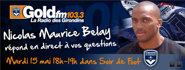Après une victoire 1-0 à la 92ème minute grâce à un pénalty face à Lorient et avant un match à Saint-Etienne pour peut-être une qualification Européenne, Nicolas Maurice-Belay sera l’invité de « Soir de Foot » le mardi 15 mai entre 18H et 19H sur GOLD FM la radio officielle des Girondins de Bordeaux, pour répondre aux questions des supporters.