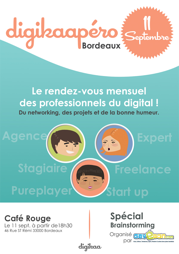 Le Digikaapéro est un moment de networking informel entre professionnels du digital afin de concrétiser une prise de contact en ligne, d’échanger avec des experts, de trouver des partenaires, recruter des talents... En résumé c'est LE rendez-vous à ne pas manquer pour tous les professionnels du digital, comme pour les étudiants qui se destinent à en devenir... Ça tombe bien, cet évènement est organisé à Bordeaux, et le prochain rendez-vous est programmé le 11 septembre.
